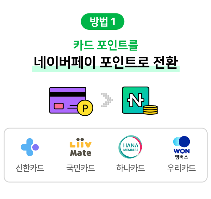 - 신용카드 포인트 활용하기: 신용카드 포인트를 네이버페이로 전환하여 다양한 상품이나 가맹점에서 사용하세요.