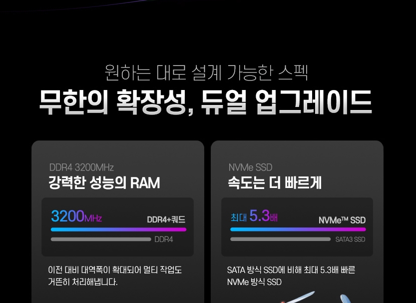 인텔 코어 11세대 i5-1135G7 프로세서와 8GB DDR4 3200MHz 메모리를 탑재했으며 256GB의 NVMe SSD 스토리지를 탑재했다. 메모리가 8GB라 조금 아쉬울 수 있지만 확장 슬롯이 있어 추가로 설치할 수 있다. 사무용 노트북과 고성능 노트북의 가장 큰 차이점은 그래픽 카드다. LG 노트북 15UD70P-PX50K 모델은 엔비디아 지포스 GTX 1650Ti GDDR64 4GB를 외장 그래픽으로 탑재해 그래픽부터 가벼운 게임플레이까지 원활한 성능이 가능하다. 참고로 이 모델은 창문이 없는 모델입니다.