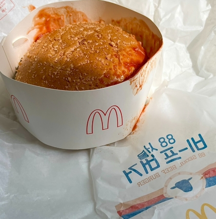 기본에 100원 추가해서 콜슬로우 하나 주문했어요.솔직히 포장지 자체는 다른 햄버거와 똑같지만, 88서울비프라는 색상과 단어 때문인지 포장지에서 보면 오래된 햄버거처럼 느껴졌던 맥도날드의 신메뉴는...! 1988년 1호점이 문을 열었을 때 디자인이었는지 궁금하다. 헤헤#88 서울비프버거는 달걀 양배추 샐러드와 쫄깃쫄깃한 고로케빵, 육즙이 풍부한 쇠고기 패티가 어우러진 풍미가 가득한 버거다. 88년의 추억이 담긴 버거로 야심차게 출시된 신메뉴입니다! 아까도 말했듯이 맥런치에도 적용되는 메뉴라서 점심시간에 방문했을 때 조금 더 저렴하게 맛볼 수 있으니 맥런치에서도 먹어보는 게 좋을 것 같아요!크로켓빵 사러 가기 전에? 그게 뭔지 궁금했는데, 햄버거 빵이 다른 버거들과 다른 느낌이었어. 눈으로 봤을 때는 좀 거칠었는데 식감이 바삭바삭하고 끈적끈적했어요!